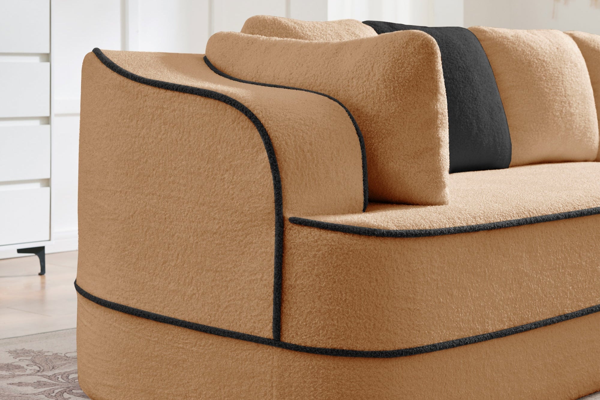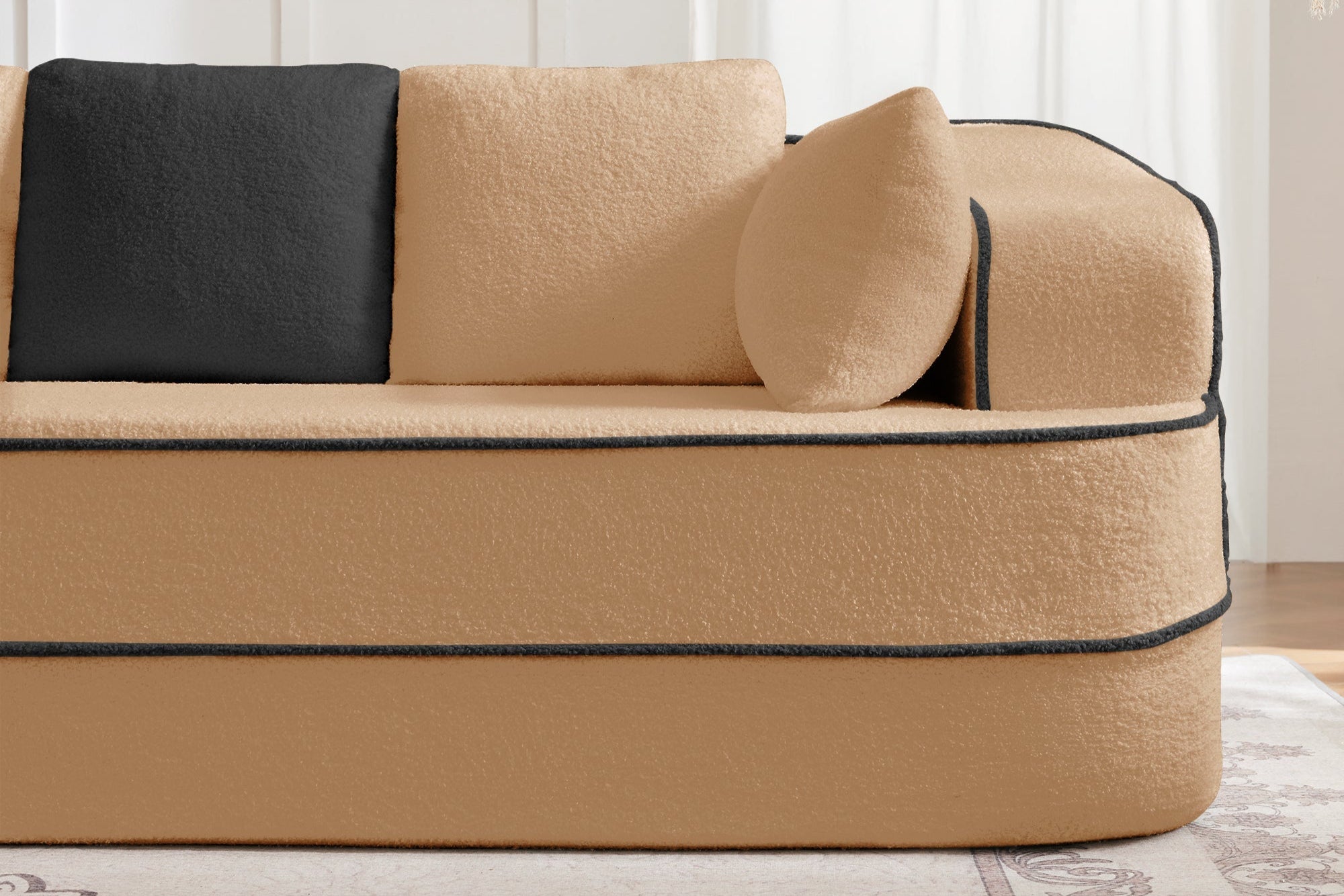 Unwind on the ELYSEE Sofa's plush teddy velvet, offering cloud-like comfort that cradles you in coziness. The ergonomic design with curved armrests supports your body perfectly, turning relaxation into a daily luxury you deserve, without any assembly stress.