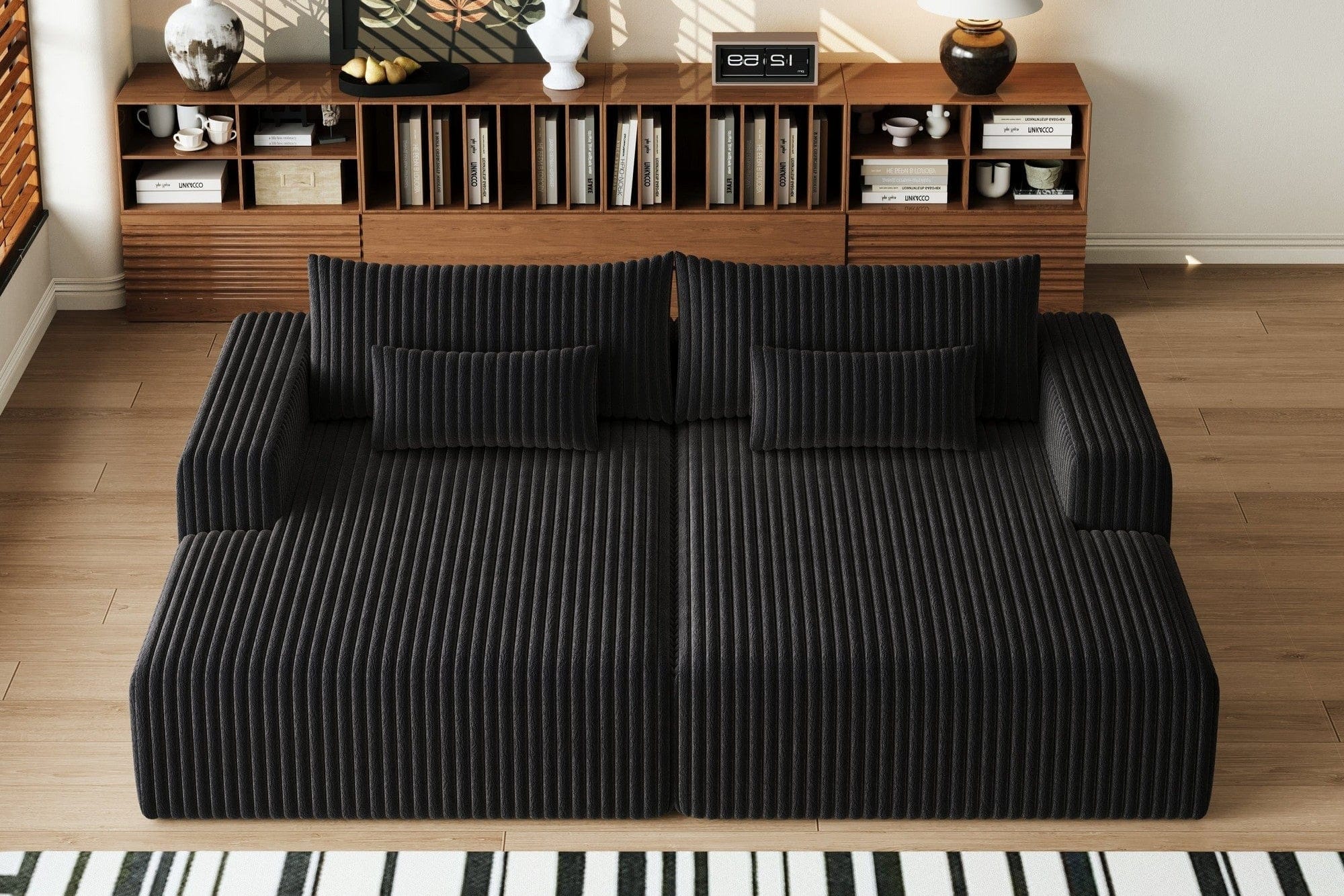 Wrapped in ultra-soft corduroy fabric, the ALARA Oversized Sofa delivers a warmth and texture that is perfect for all seasons. The cozy material invites you to sink in and relax, whether you're enjoying a quiet night at home. The fabric is not only inviting but also easy to maintain, ensuring your sofa looks great year-round without the hassle.